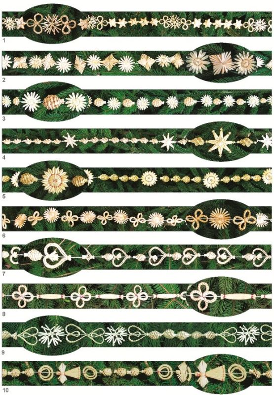 Dekorační slaměný řetěz, délka 2m, mix designů.