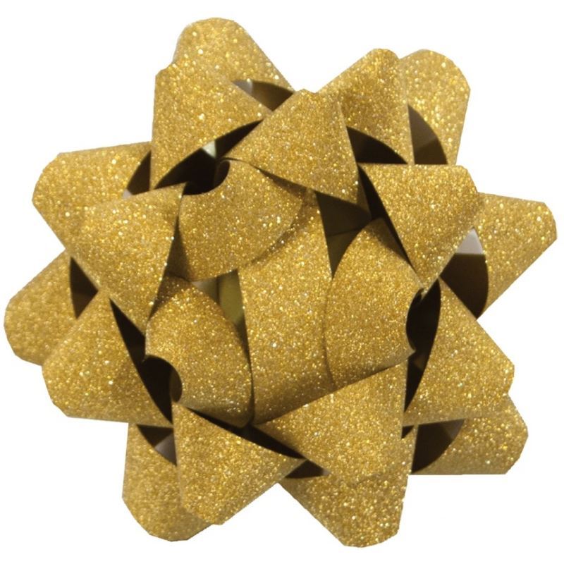 Krásná velká dárková rozeta samolepící, glitrovaná, ručně skládaná, každý kus balený samostatně na kartě, cena za 1 kus. Mix barev viz obrázek, zlatá, stříbrná.