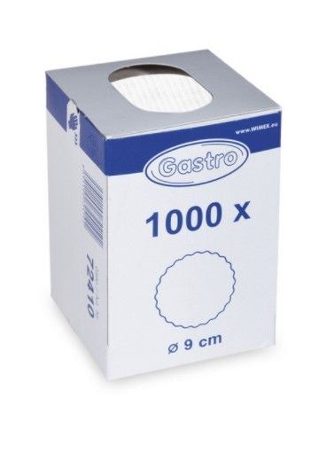 Rozetka papírová vhodná pod sklenice Wimex 72410, pod chuťovky, do podšálků atd. Průměr 90 mm. Balení 1000 ks. Cena za celé balení.