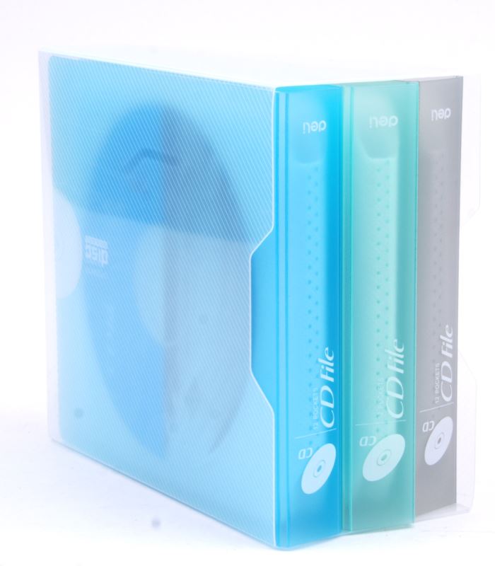 Jeden box má kapacitu 12 CD, v sadě jsou 3 barevné boxy, viz obrázek, které jsou v PP průhledném obalu/stojanu. Celkem lze uložit 36 CD.