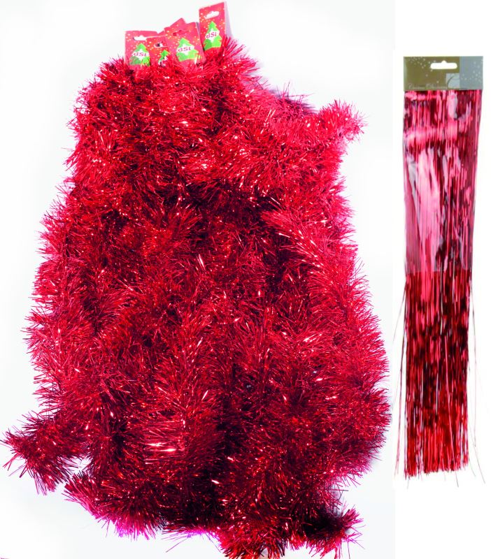V sadě naleznete 5 kusů červených extra hustých řetěhů každý o délce 200cm a průměru 8cm a jedno balení červených andělských vlasů.