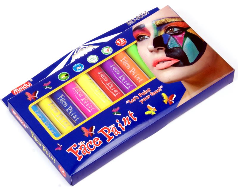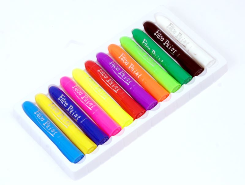 12 základních barev na tělo a obličej. Netoxické, smývatelné, vysouvací tuha. Vhodné pro malování na obličej i tělo při karnevalech, a jiných kulturních akcích.