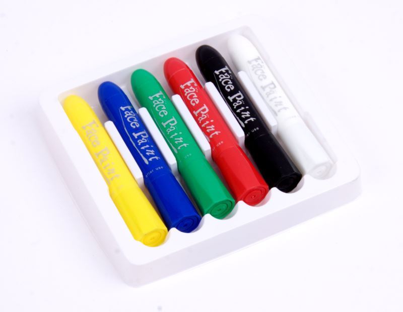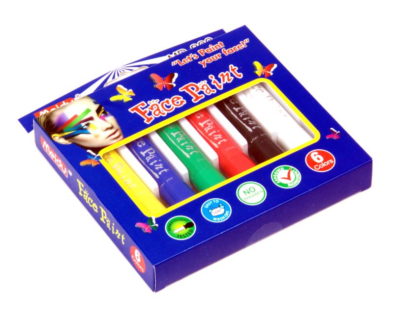6 základních barev na tělo a obličej. Netoxické, smývatelné, vysouvací tuha. Vhodné pro malování na obličej i tělo při karnevalech, a jiných kulturních akcích.