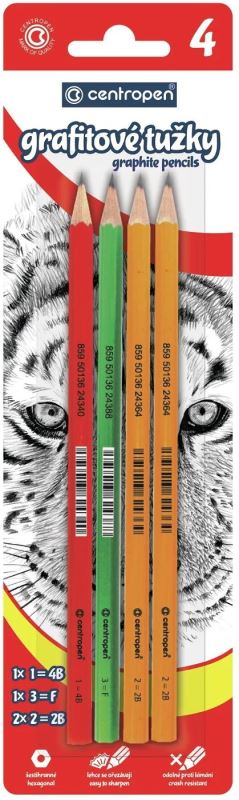 Obsahuje 2 x tužku číslo 2 = 2B 1x tužku číslo 3 = F, 1x tužku číslo 1 = 4B