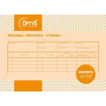 Samopropisovací, nečíslovaná. Formát A5 na šířku. Obsahuje 100 listů odtržitelných perforací, se zakládacím děrováním