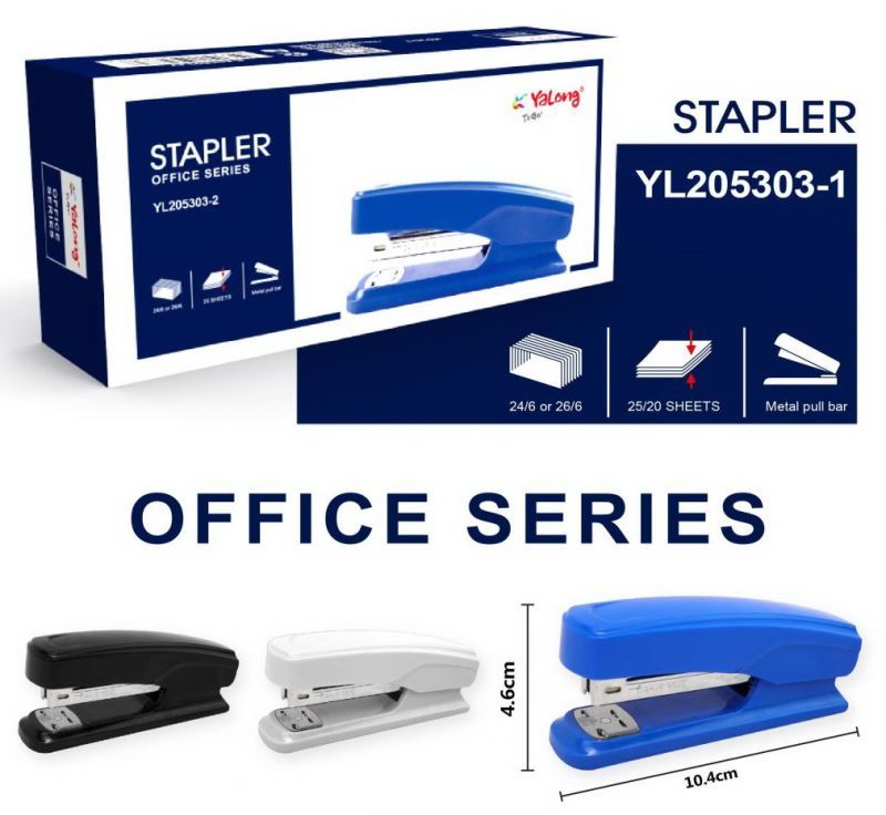 Sešívačka na drátky 24/6 a 26/36, max 25 listů papíru, vhodná pro kancelářské a školní využití. Mix 3 barvy, modrá, bílá, černá.