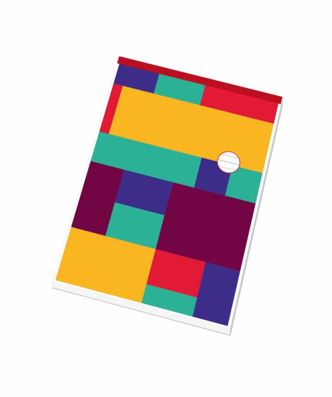 Univerzální linkovaný blok z bezdřevého papíru s perforací, sešitý skobami na kratší straně.