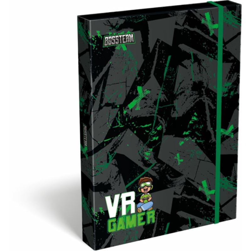 Velmi pevný kartonový box na sešity s potiskem, krásný design a barvy. K uzavření slouží gumička.