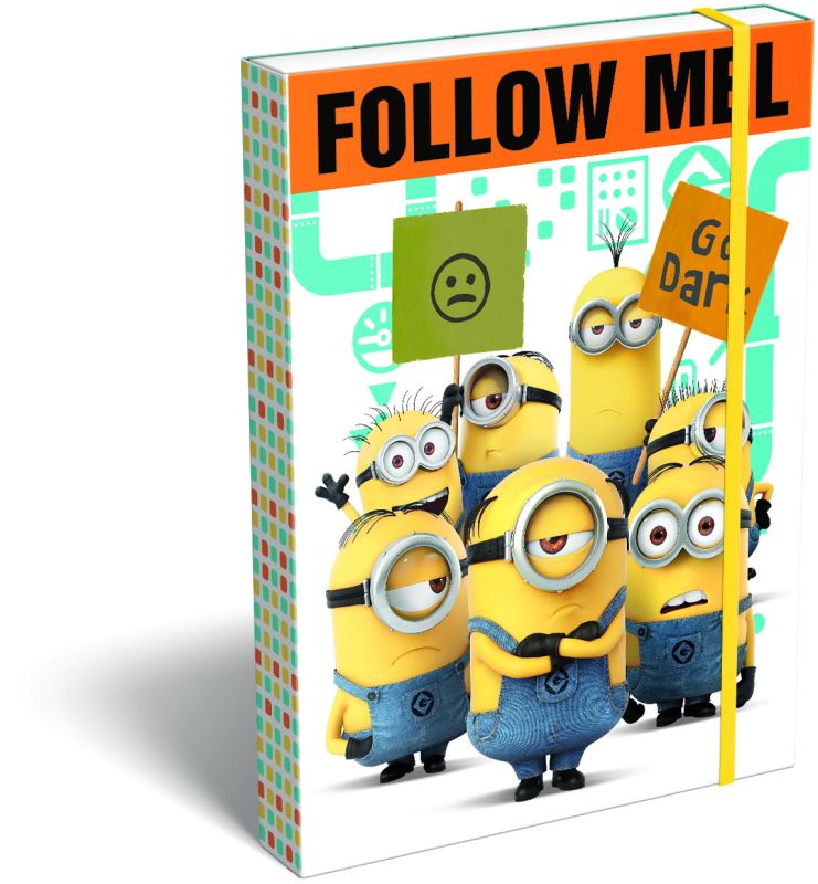 Školní pevný kartonový box A5 na sešity, rozměr 23,5cm x 17cm x 3cm, opatřený gumičkou k uzavření. Hladký povrch, lesklý potisk, vhodný pro školáky k uchování sešitů.