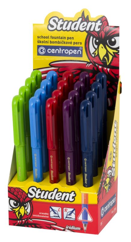 Školní bombičkové pero, Centropen, ERGO držení, modrý zmizíkovatelný inkoust, hrot s iridiovou kuličkou, tenká rovnoměrná stopa písma, balení 20ks, cena za 1ks.