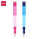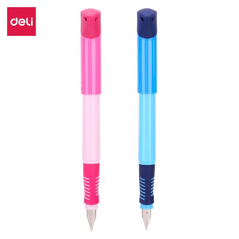 Školní bombičkové inkoustové pero Deli s iridiovým hrotem, trojbokým úchopem a zásobníkem s 6 náhradními bombičkami.