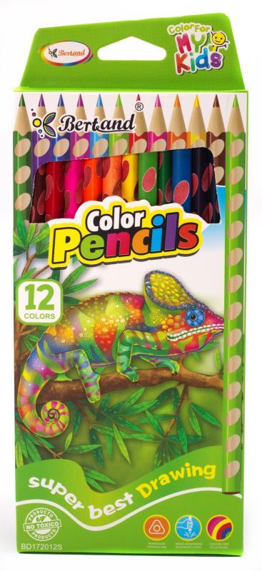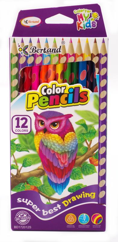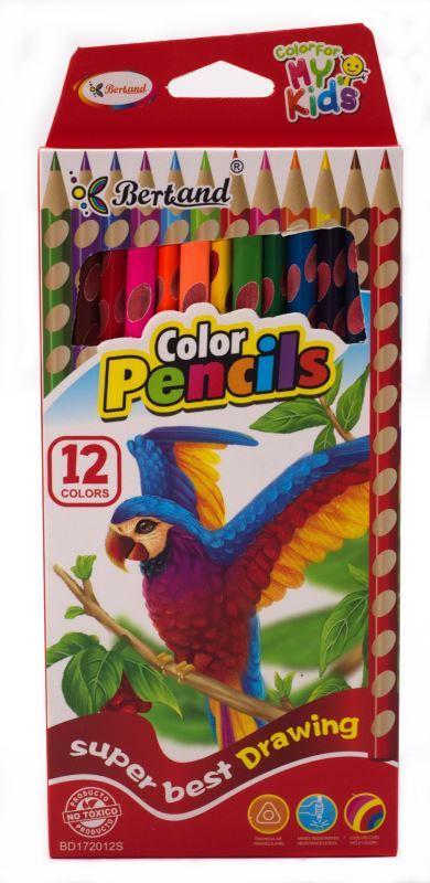Souprava trojbokých pastelek, vysoké kvality. Vynikají světlostálostí, čistotou barev a barevnou škálou čítající 12 různých barevných odstínů. Netoxické dobře ořezávatelné - nekloužou v ruce, vhodné pro malé děti, které se učí malovat a psát.