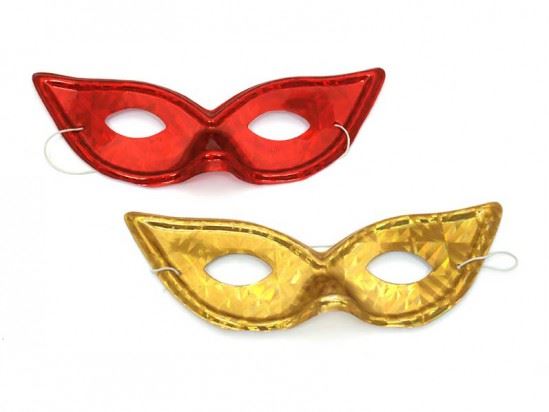 Plastová lesklá škraboška kočičí oči, tři barvy: zlatá, stříbrná, červená.