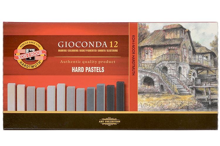 Soupravy uměleckých tvrdých pastelů hranolovitého tvaru s různými odstíny šedých nebo hnědých. Mají voskový charakter a jsou vhodné pro uměleckou kresbu.