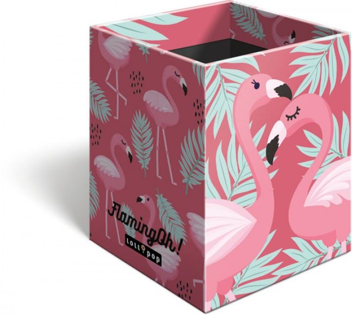 Pevný stojánek na tužky, materiál laminovaný karton, lesklý barevný potisk. Rozměr: 8x8x10cm.