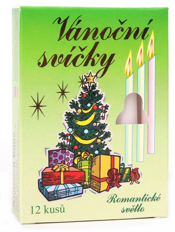 Tradiční vosková svíce, rozměr jedné 9,5cm x 1,2cm. Balení 12ks cena za 1 balení