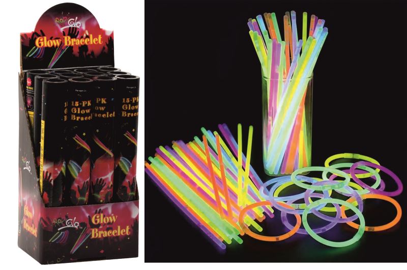Svítící tyčinky, (Glowsticks, Lightsticks), tyčinka se rozsvítí po zlomení, nebo zatřesení tyčinkou, lze spojovat, vytvářet náramky, náhrdelníky aj.. Vhodné pro párty, oslavy, mix barev v balení. Cena za celé balení 15ks.