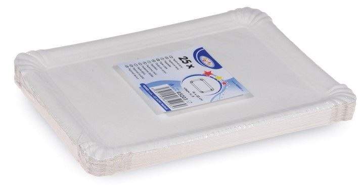 Papírový jednorázový tácek, rozměr 16x23cm, vhodný na servírování potravin při oslavách i párty. Barva bílá, balení 25ks, cena za balení.