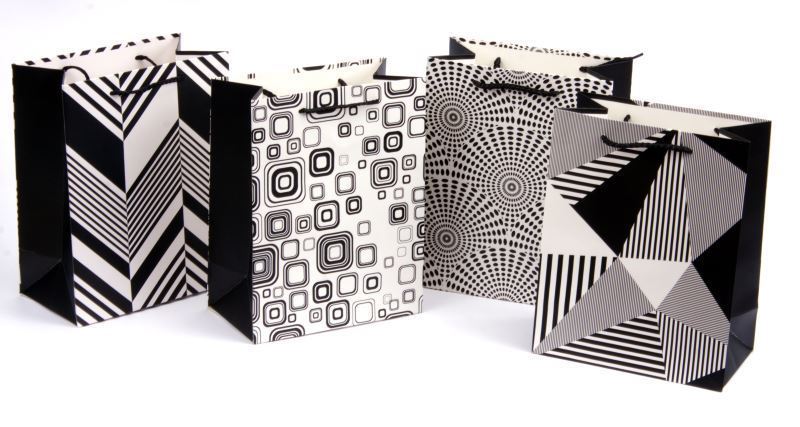 Luxusní dárková taška z 250g kartonu matný tisk s textilními uchy. Balení po 12 ks. Mix 4 motivů.
