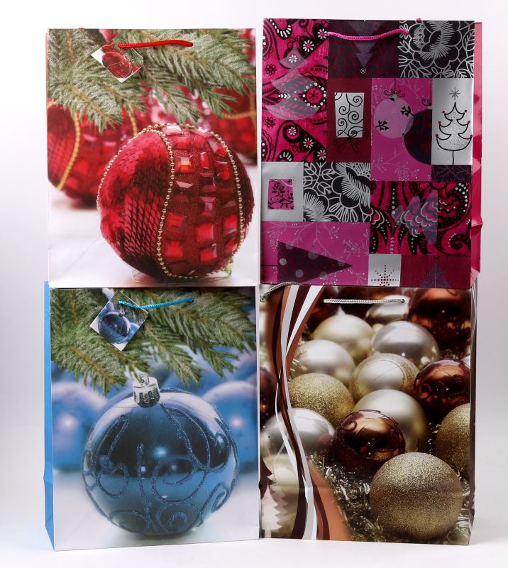 Vánoční papírová dárková taška, s textilními uchy. Mix 4 motivy.