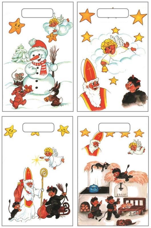 Taška igelitová mikulášské motivy 32x20x8cm, ideální pro mikulášskou nadílku. Mix motivů viz obrázek.
