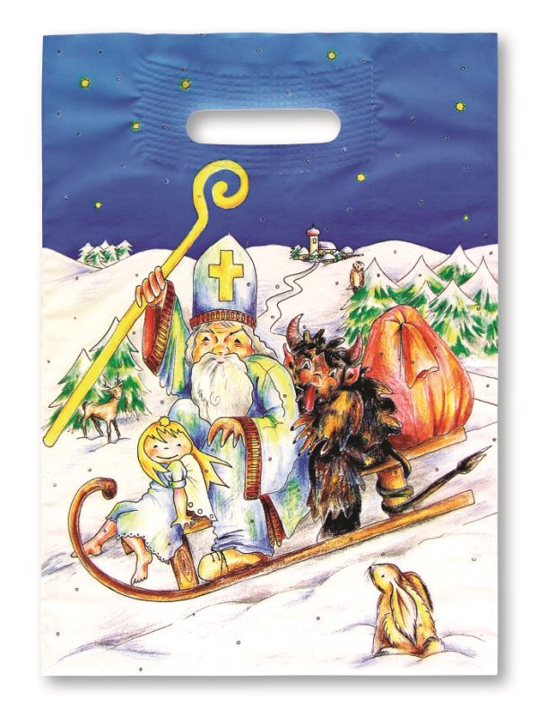 Taška průhmat Mikuláš na saních 27x37cm/45my