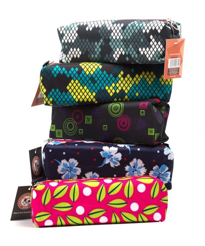Textilní pouzdro se zipem, penál, etue, mix vzorů a barev, pro kluky i holky. Rozměr 22x7x6cm, obdélníkový tvar. Vhodné jako pouzdro na psací potřeby pro školáky, studenty i kanceláře.