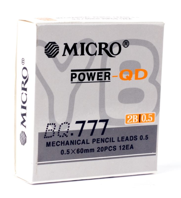 Tuha grafitová do mikrotužky. 0,5 mm 2B, 20 ks tuh v balení.