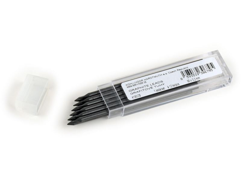 Grafitová tuha průměr - 3,2 mm a délky - 90 mm je určena do versatilových tužek. Vyrábí se v několika gradacích. Tuha má černou sytou stopu a je vhodná pro všeobecné použití.