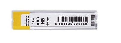 Tuha grafitová 0,3 mm do mikrotužky 0,3. Gradace HB (střední tvrdost). Balení obsahuje 12 ks tuh.