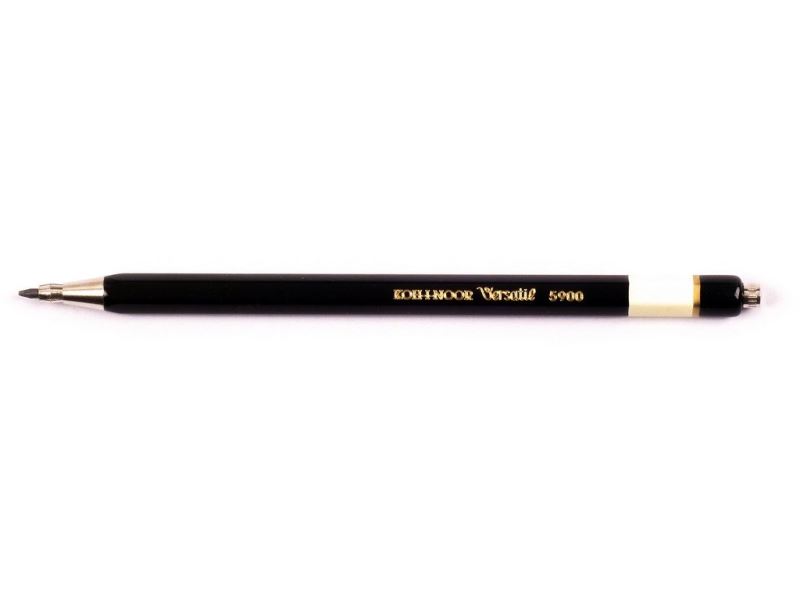Versatilka - Tužka mechanická padací, kovová, je určena pro běžné psaní grafitovou tuhou pr. 2 mm. Tuha se posunuje stisknutím knoflíku hrotítka v nakloněné poloze tužky a tím dojde k otevření kleštiny a vysunutí tuhy. Tuhu lze hrotit po odšroubování knoflíku v němž je hrotítko. Plášť tužky je šestihrannéhp profilu 0K7 lakovaný černou barvou, na konci u stiskacího knoflíku po obvodu pruh v bílé a zlaté barvě. Tužka nemá klip.
