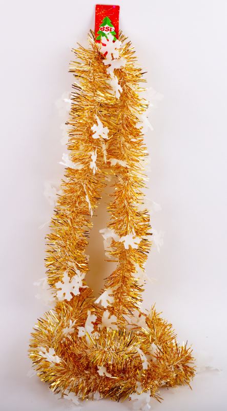 Vánoční řetěz s vločkami 12cm, délka 2m zlatý