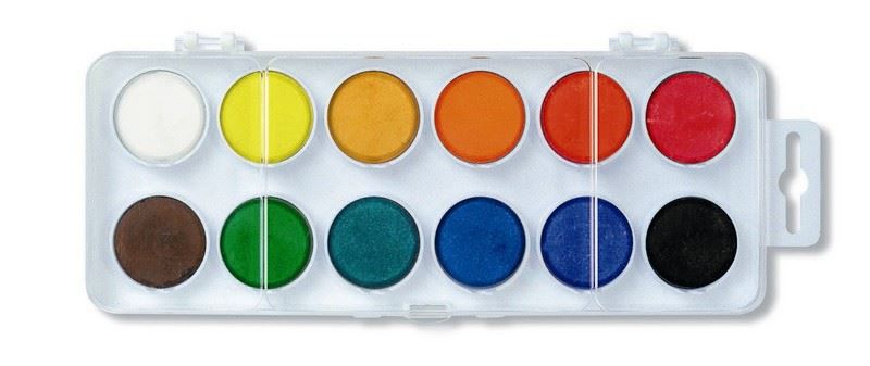 Klasické vodové barvy v soupravách. Mají jasné a syté barvy. Velikost tablet je menší, 30 mm v průměru. Barevník je obdélníkového tvaru z plastu nebo plechu.