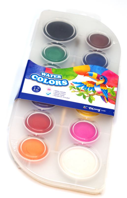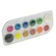 Školní vodové barvy, průměr barvy 30mm, bílá a černá barva zvětšená 40mm. Vodové barvy jsou jasné a syté a dobře kryjí. Výrazně zvětšená bílá a černá barva, barevník je z plastu, po otevření lze použít i jako paletka. Velice odolná krabička a jednotlivé barvy v samostatných plastových nádobkách, barvy se nelámou! Vhodné pro školáky.