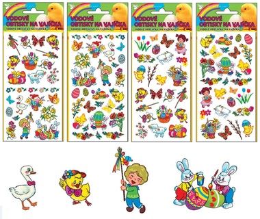 Klasické velikonoční vodové obtisky na vajíčka, mix různých motivů, viz obrázek.