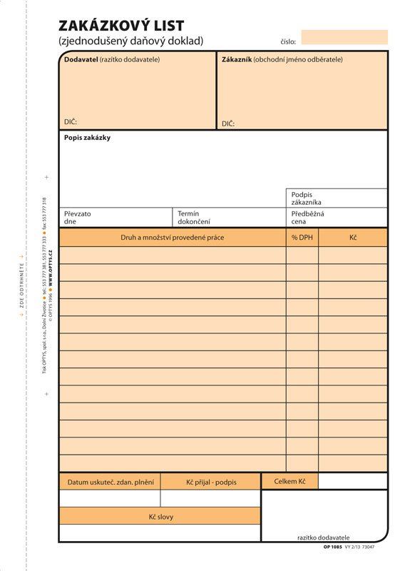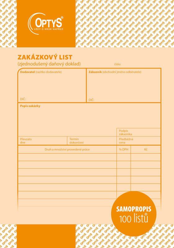Zakázkový list A5, samopropisovací, 100 listů 1085