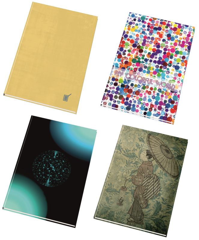 Záznamní knihy s tuhými laminovanými deskami a kvalitní šitou vazbou. Různý design laminovaných desek, viz obrázek.