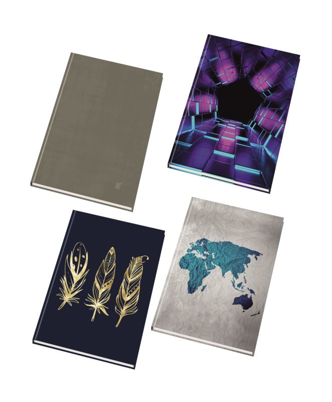 Záznamní kniha sešívaná nití, s různými designy laminovaných pevných desek a linkovaným papírem. Ideální pro poznámky a zápisky. K dispozici mix designů dle vyobrazení.