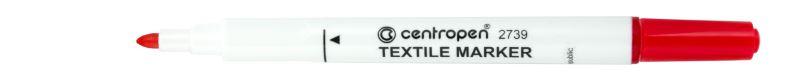 Značkovač na textil, bez nutnosti zažehlení, ERGO držení, zdravotně nezávadný inkoust, světlostálý, prát do 60 °C, skladovat ve vodorovné poloze, ventilační chránítko, válcový hrot, šířka stopy 1,8 mm.
