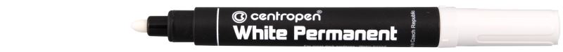 Univerzální bílý značkovač,píše na většinu povrchů,po zaschnutí odolá za sucha otěru,na porézních površích permanentní, světlostálý,vodní báze,skladovat ve vodorovné poloze,válcový hrot,šířka stopy 2,5mm.