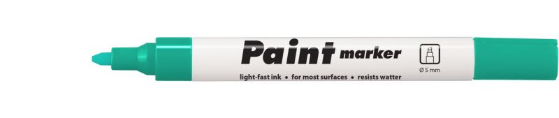 Lakový značkovač s přepouštěcím mechanismem,píše na neporézní povrchy,po zaschnutí odolá vodě, otěru, povětrnostním vlivům, větlostálý,neobsahuje toluen/xylen, klínový hrot,šířka stopy 1-5 mm.